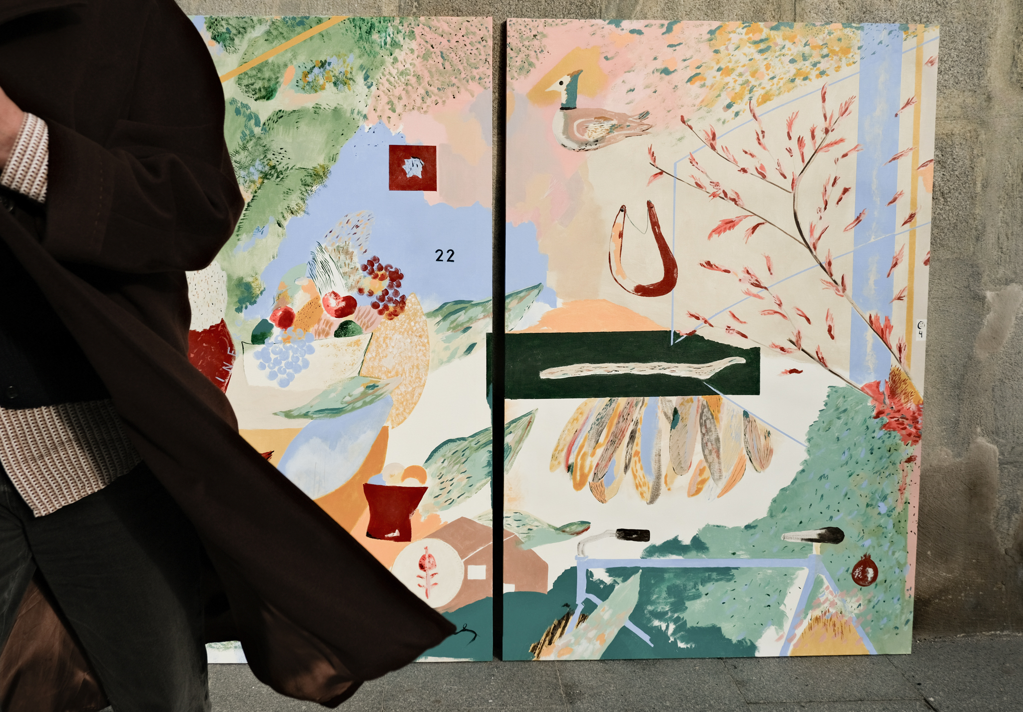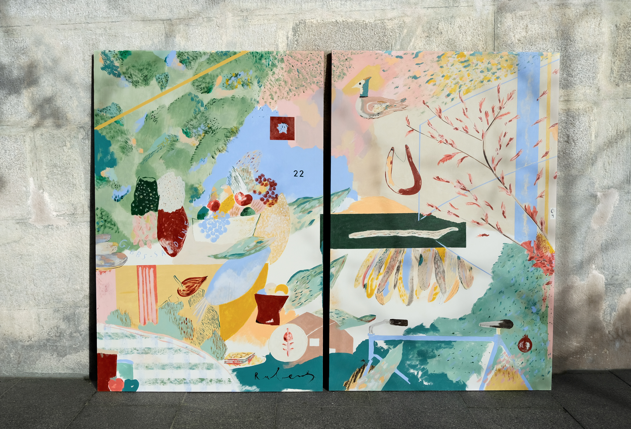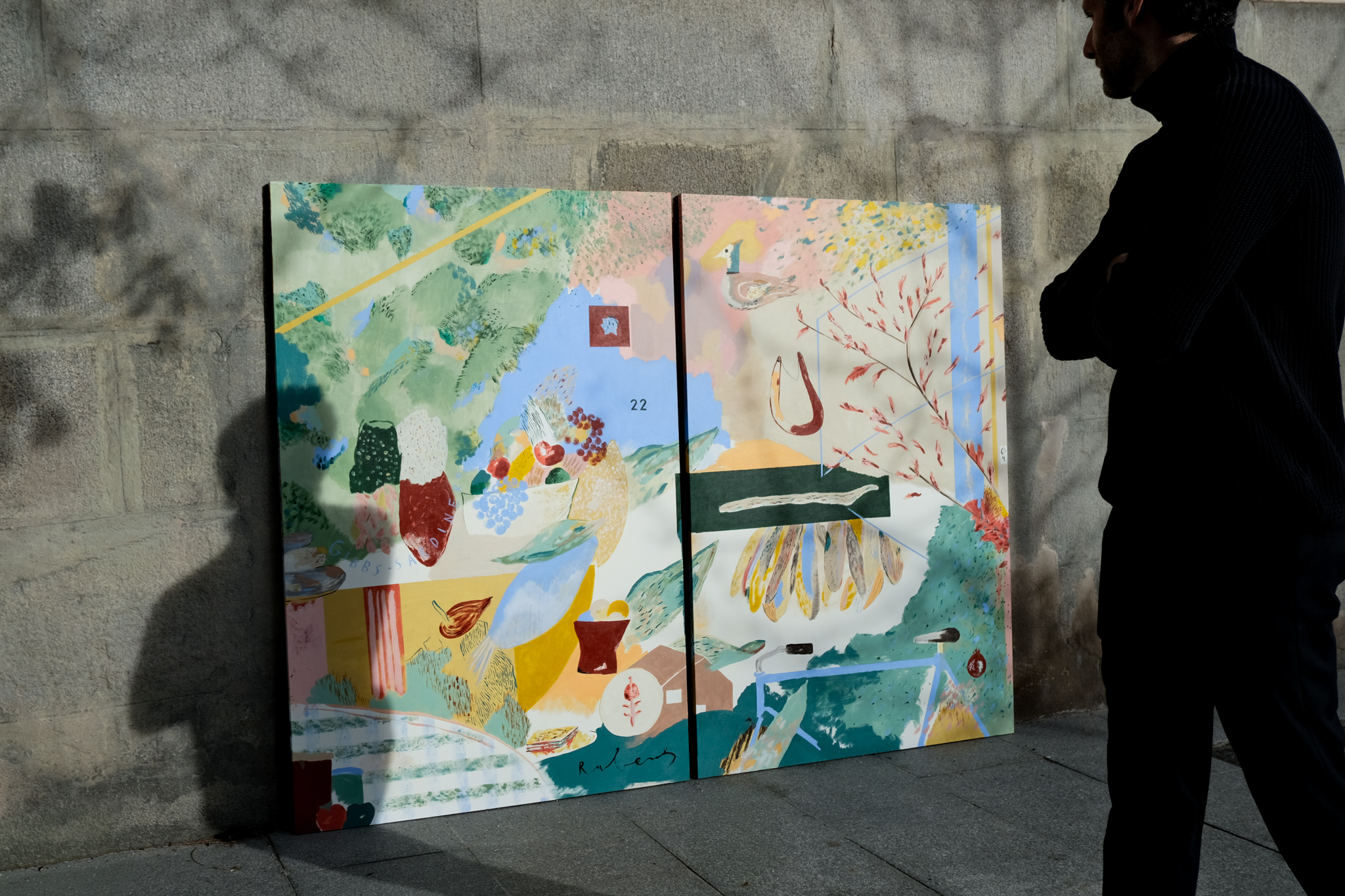 RetratoS ha vivido en Londres muchos años. Con su familia (P, C y E) y con Rubens, otro más. Ahora viven en Madrid pero tienen una casa, proyectada por Estudio Reciente en El Escorial. Con una escalera de caracol azul. Como punto de partida la mermelada de ciruelas claudias de la abuela, de la que parte este encargo, el chorizo de León, la fruta, los helados de Cadaqués, el fish & chips que les recuerda a antes de la pandemia, su plato familiar de arroz y más cosas. Piedras, palos y casas que representan sus intereses simbólicos. El tutú de plumas y los dibujos de pájaros. La bicicleta. El arce.